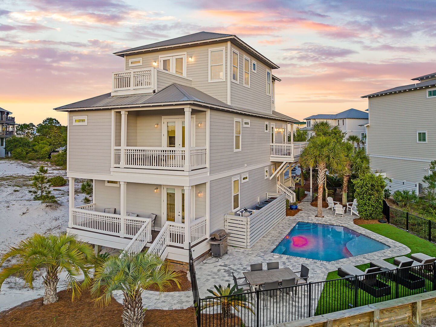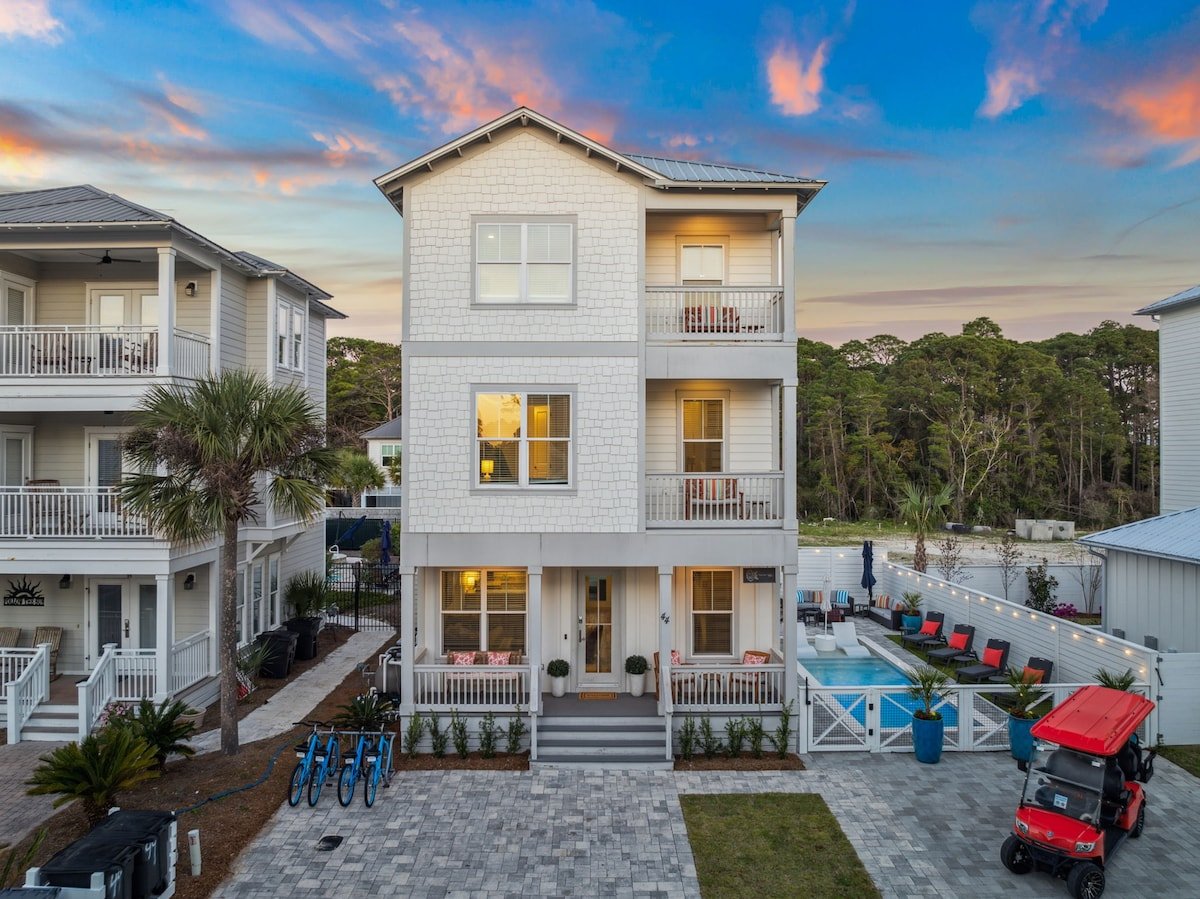 This was a beautiful home and a wonderful location, just steps from the beach and walkable to several restaurants! It’s even more aesthetic and beautiful in person! The main living area and kitchen is on the first floor and all the bedrooms are upstairs, but are large enough with patios that you can enjoy time there as well!