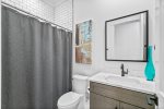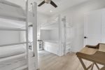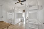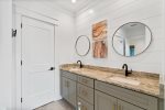 - Guest Bedroom 2: Two sets of twin over twin bunk beds (sleeps 4), shared bathroom with double vanities and large glass shower