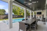 6-Seater LSV and 4 bikes included, outdoor fireplace with TV above, private saltwater pool with sun shelf + lounge chairs, BBQ grill, custom landscape lighting, and more in this fully fenced massive backyard oasis!