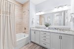 - Bedroom 3 - King bed, access to hallway bathroom with shower and tub combination and double vanities (2)