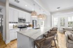 - Fully equipped kitchen with stainless steel appliances and newly-renovated massive island