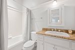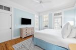 - Master bedroom 2 with king bed + en suite bathroom with tub/shower combo + private porch access