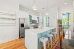 The home features a private, heated saltwater pool, 4 porches, lush landscaping and parking for up to 5 cars. Inside, you will find beautiful hardwood floors, a fully upgraded chef's kitchen with waterfall quartz island, stunning bathrooms, 2 master en-suite king bedrooms, and a bonus bunk room on the 3rd floor with a kitchenette.