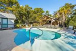 The perfect family vacation home with all the amenities! Private heated pool, carriage house, open concept floor plan, quartz counters throughout, indoor + outdoor living and dining spaces, multiple porches, 3rd floor bunk room - this home has it all!