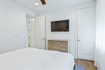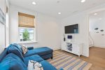 Upstairs, you’ll find 3 more cozy bedrooms, 1 King bed, 1 Queen bed, and 1 bunk room that sleeps 4! Plus, there’s an outdoor shower for you to rinse off after your beach adventures. There is also a 2nd living space upstairs with a sleeper sofa.