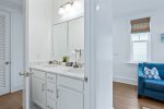 - Guest Bedroom: Queen bed, shared bathroom with tub/shower combo
