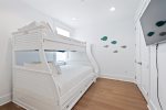 - Bunk room: A full bottom bunk with a twin top bunk and a twin trundle pull out bed, shared bathroom with tub/shower combo