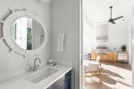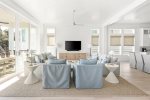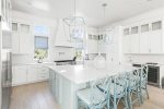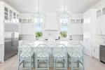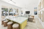 Inside, you’ll love the open concept, separate living spaces on each floor, giving you plenty of room to spread out and relax. The home is packed with top-of-the-line, resort-style amenities, including a gorgeous rooftop deck with corn hole, sun loungers, and the best Gulf Views! There is also a Sonos sound system throughout the entire property for the perfect soundtrack to your vacation.