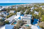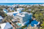 LOADED with amenities and top-of-the-line finishes! Private pool and spa, stunning panoramic gulf views from expansive 4th floor rooftop deck, complimentary 6-seater LSV + 6 bikes, built-in outdoor kitchen, ping pong table, cornhole, 3+ open concept living spaces, multiple porches, 8 bedrooms with en suite bathrooms - this home has everything for the PERFECT beach vacation!