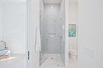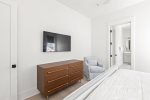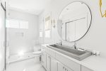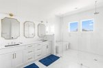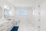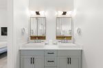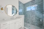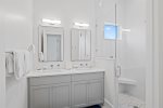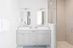 - King bedroom + en suite bathroom with oversize glass shower and dual vanities