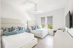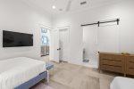 - Two Queen beds + en suite bathroom with oversize glass shower and dual vanities