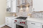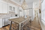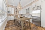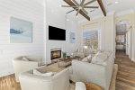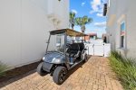 Enjoy Gulf views, a stunning outdoor space with PRIVATE POOL and backyard with dining table, 6-seater LSV INCLUDED, 4 complimentary high end beach cruiser bikes, multiple porches, a gourmet chef's eat-in kitchen, open-concept layout, indoor and outdoor living and dining areas, and gas fireplace in the coastal living room!