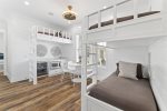 - Bedroom 2: Bunk room with 3 Twin beds, shared bathroom with shower/tub combination