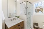 On the first floor you'll find a guest bedroom with a Queen bed and it's own private patio, a bunk room with 3 Twin beds and a kitchenette with extra seating, plus an additional guest bedroom with 2 Full beds, access to the pool area, and an en-suite bathroom with a glass shower. There is an additional bathroom with a shower/tub combination, which is shared by the Queen room and Bunk room.