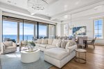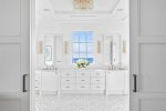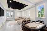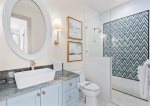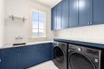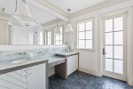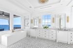 Advancing to the third floor, you will find one of the main master suites, with a King bed, enormous private balcony, walk-in closet with built-in cabinetry, massive en-suite bathroom covered in marble with a floating soaker tub, huge glass shower, and views for days! There is another living space with TV on the third floor with another built in wet bar with waterfall counter + sectional couch, in addition to a full size laundry room, and two more guest suites with en-suite bathrooms (one with a shower and one with a shower/tub combination) - one with a King size bed and one with two Queen size beds. There is also a second bunk room on this floor with one set of Twin-over-Twin bunks.