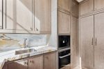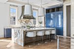 The stairs and second floor are covered in stunning French Oak. The open-concept chef's kitchen is beautifully designed with a custom hood vent, massive island with barstool seating (4), gorgeous marble counters, 48" Miele gas range and built-in Miele refrigeration system, 2 dishwashers, as well as a separate butler's pantry room with ample storage & additional appliances including another oven, microwave and sink.