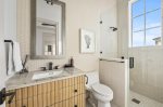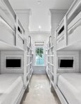 - Bunk Room with four sets of built-in Twin-over-Twin bunk beds (each with their own TV) with private en-suite bathroom with glass shower