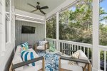 - A screened in back porch complete with a TV and cafe string lights that backs to Point Washington State Forest with privacy - perfect for that morning cup of coffee or evening glass of wine!