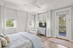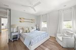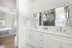 - Primary Master Bedroom - King bed with en suite bathroom with dual vanities, large glass shower, and access to the private screened in porch