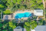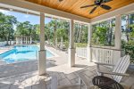 Perfectly laid out with 2 master bedrooms (1 on main floor), 3 porches with cafe lights making for prime indoor/outdoor living (2 are screened in), outdoor shower, white quartz kitchen, open concept floor plan, and is just 2 houses from the beautiful community pool!