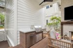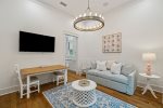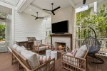 When taking a break from enjoying the wonderful WaterColor amenities, this house has a picturesque outdoor living space complete with a private heated swimming pool, grilling area, 75-inch outdoor TV, and a gorgeous outdoor Fireplace with lounge seating. Alternatively, retreat to one of the two swing beds on the front porch to enjoy your morning coffee or evening glass of wine.