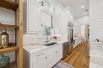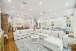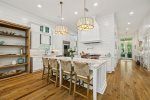 - Fully equipped high-end chef's kitchen with top-of-the-line appliances, and eat-in breakfast bar on the massive island
