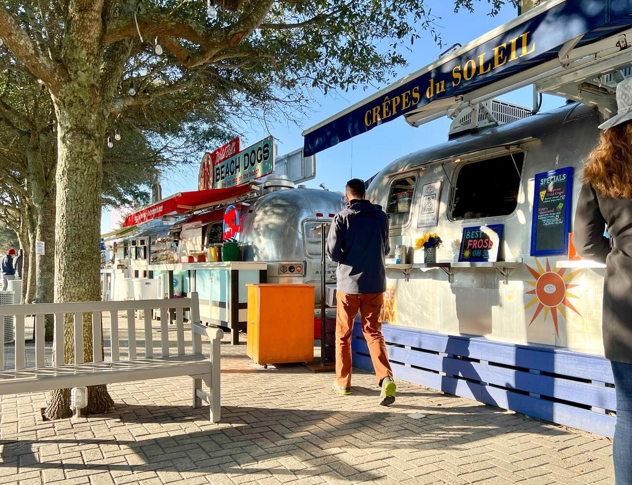 Guests staying in Seaside enjoy having everything just a short walk or bike ride away. The town’s central amphitheater is a hub of activity year-round, hosting farmers markets, live music, movie nights, and seasonal festivals. Around it, you’ll find a mix of local boutiques, art galleries, and plenty of places to eat— including a variety of delicious airstream food trucks! There are also public restrooms located near the amphitheater and shopping district. While parking is limited, the entire town is walkable and LSV/bike-friendly!