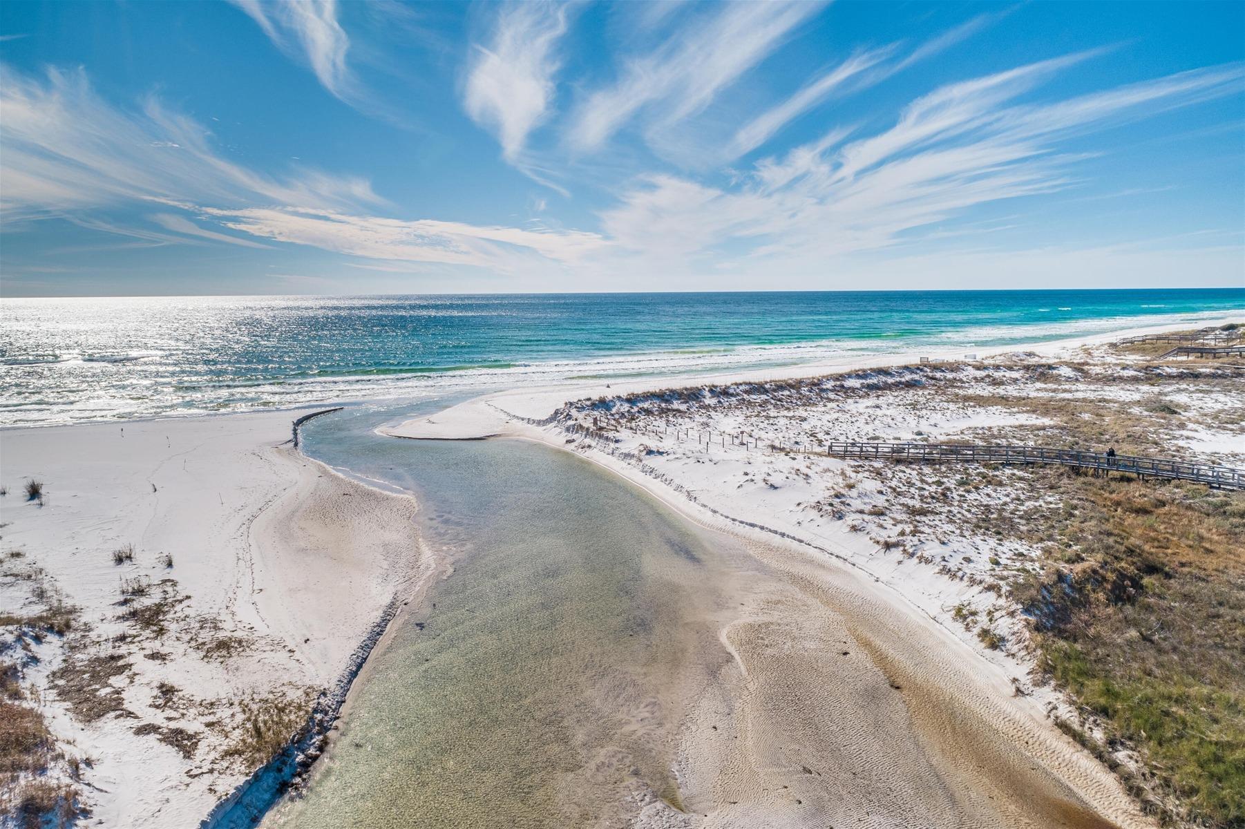 Most beach access here is private for residents and guests, though public beach access is available at Deer Lake State Park, located just west of Watersound. This serene and less-crowded beach offers a half-mile stretch of sugar-white sand and is accessible via a boardwalk that winds through the park’s unique dune ecosystem! The park also provides picnic facilities, restrooms, and parking for ultimate convenience.