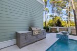 - Outdoor built-in kitchen with lounge seating area and dining area
