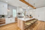 - Fully equipped high-end chef's kitchen with top of the line appliances, and eat-in breakfast bar on the massive island