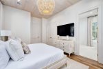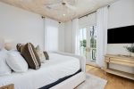 - Bedroom 7 with king bed + en suite bathroom with glass shower, private porch access overlooking pool