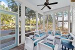 The serene screened-in front porch has plush outdoor seating perfect for sipping a morning cup of coffee or evening glass of wine. Surrounded by natural green space and parks, it offers the most perfect private, peaceful retreat.