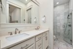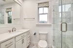 - Master Bedroom 1: King bed, private en-suite bathroom with large glass shower