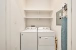 Just off of the kitchen there is a gas BBQ grill available, and outdoor dining table. This home also includes a main floor full size washer and dryer convenient for longer stays!