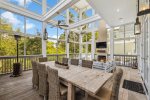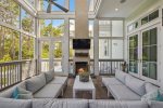 The open floor plan features a gourmet kitchen, butler's pantry, a spacious living area, and a dining room that opens to a large two-story screened porch where you can enjoy a large outdoor dining table, a fireplace, and a TV. Hardwood flooring, shiplap, marble, and tile throughout the home. There is also a private heated pool located just outside of the porch doors! The BBQ grill can be found off of the garage.