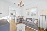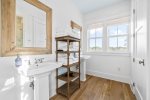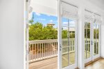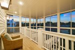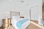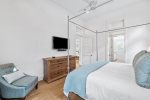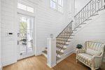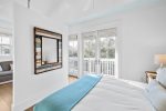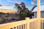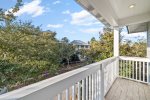 On the second floor, you'll find one master bedroom with a King bed, plus two Queen guest bedrooms all with en-suite bathrooms. Also on the second floor, there is an additional living room with balcony access overlooking the main floor of the porch.