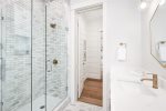 The first floor also has a master suite for added convenience, with a King bed and en-suite bathroom with a walk-in shower.