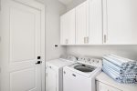 Two laundry rooms, one on each floor, make it easy to handle towels and beach gear. There is also an attached two-car garage, with extra parking available in the driveway.