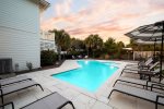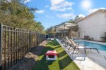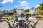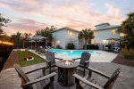 Outdoor oasis featuring a HUGE private pool, BBQ grill, multiple outdoor dining areas, outdoor shower, FIRE PIT, corn hole & more!
