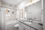 - Bedroom 3: King bed, shared bathroom with shower/tub combination (2)