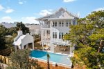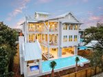 8 bedrooms EACH with its own bathroom, including 6 KINGS & 2 Bunk Rooms! Private heated pool, hot tub, game room with a ping pong table and shuffleboard, balconies galore, HUGE living room couch, multiple outdoor dining spaces, THREE washer/dryer sets, & MORE!