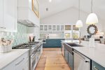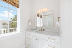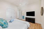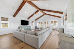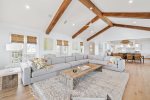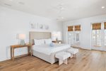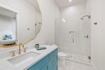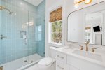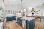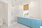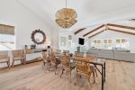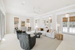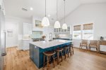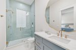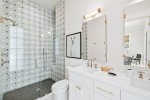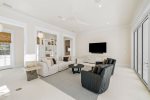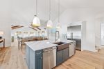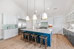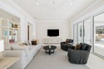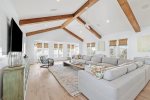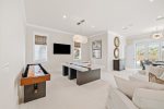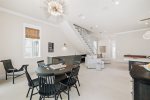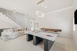 As you walk through one of the three sets of beautiful French doors, the first thing you'll notice is the secondary living room, offering a bright and airy space to unwind. From there, you'll find the game room complete with a ping pong table, shuffleboard, dry bar, TV, additional sofa, and a table that could be used either for dining or for playing board games together! There is also a convenient laundry room on this floor, as well as a Bunk Room with two sets of Twin XL-over-Twin XL bunks, with an adjacent full bathroom with dual vanities and a glass shower!