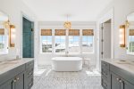 - Bedroom 8: Master with King bed, en-suite bathroom with dual vanities, glass shower, and separate soaking tub, + balcony access
