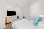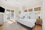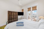 - Bedroom 4: King bed, en-suite bathroom with glass shower, + balcony access