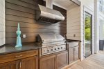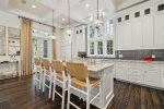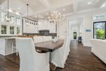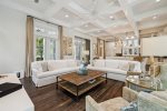 This spacious home is LOADED with amenities, featuring FIVE living rooms, six gorgeous bedrooms, fourth floor lookout with Gulf Views, a carriage house, and an outdoor oasis with a private pool, outdoor dining, outdoor kitchen, and privacy!