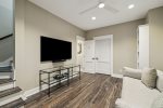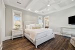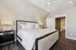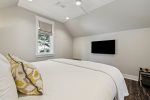 Moving up to the third floor, there’s yet another living space, a half bathroom, and two additional King bedrooms. One of these bedrooms has a private balcony, and they both share a hallway bathroom with dual vanities and a large glass shower.