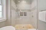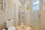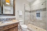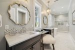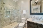 - Bedroom 5: King bed, shared bathroom with dual vanities, large glass shower