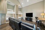 - Bedroom 6: Bunk Room with 2 sets of built-in Twin-over Twin bunks, en-suite bathroom with shower/tub combination
