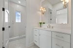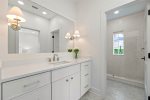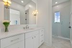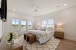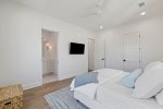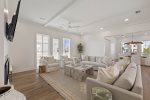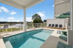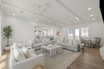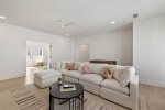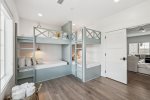 On the third floor, you'll find the fun-filled game room, featuring Foosball, shuffleboard, a comfy sofa, and a TV for extra entertainment! Also on this floor are the other four bedrooms, the first being the Master bedroom featuring a King bed, a private balcony with gorgeous Gulf views, and a luxurious en-suite bathroom with dual vanities, a large glass shower, and a separate soaking tub. There are two additional King bedrooms, each with a private balcony with lake AND Gulf views, and an en-suite bathroom with a glass shower. The last bedroom is a bunk room with three sets of Twin-over-Twin bunks, a private balcony also with lake and Gulf views, and an en-suite bathroom with a shower/tub combination.