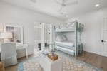 - Bedroom 6: Bunk Room with 3 sets of Twin-over-Twin bunks, private balcony with Lake and Gulf Views, en-suite bathroom with shower/tub combination
